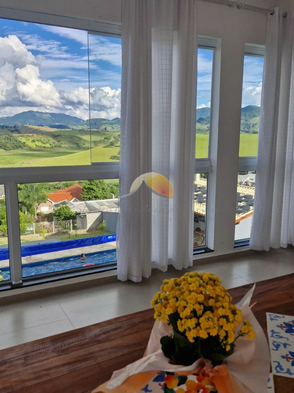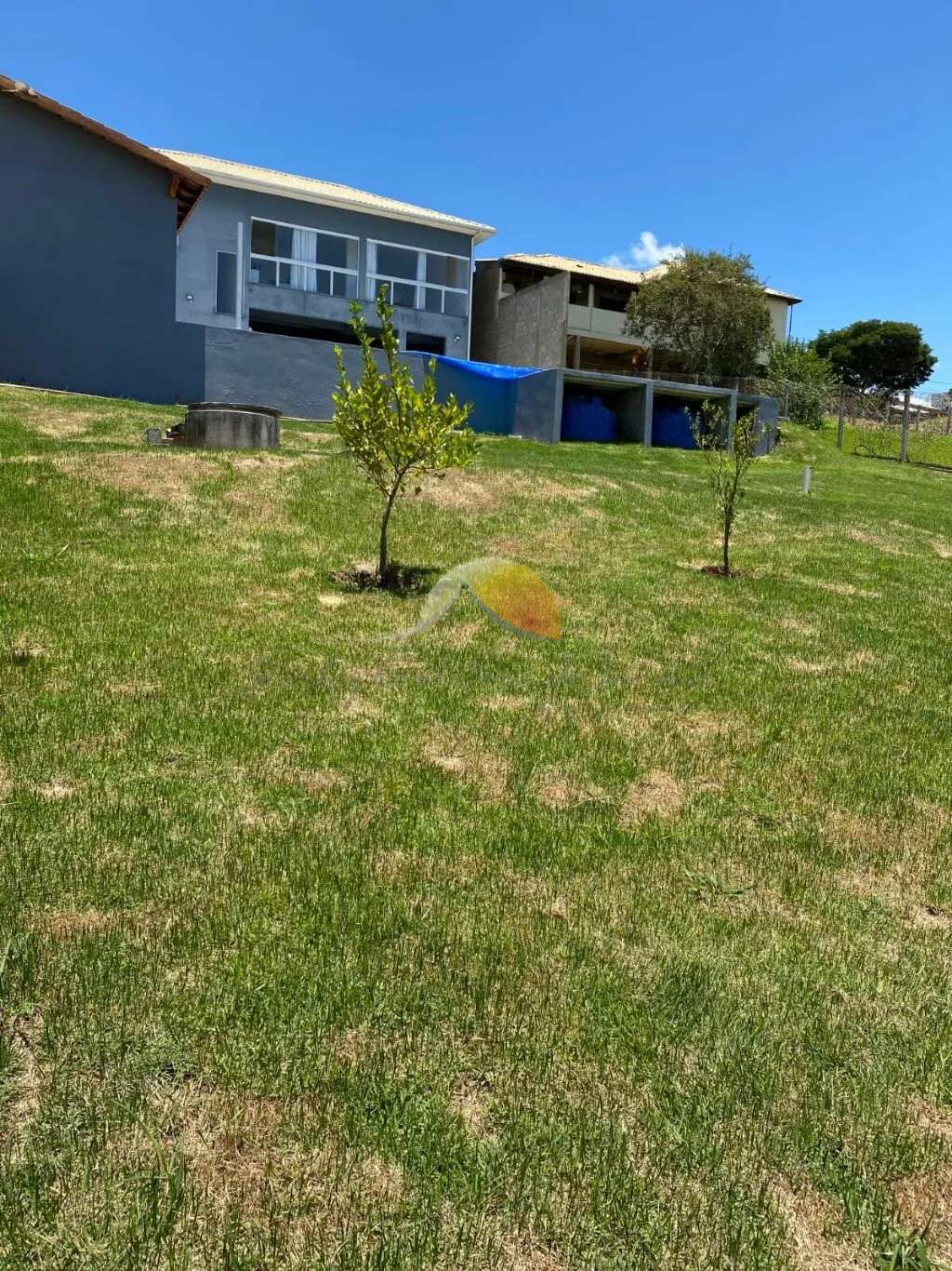 Esta residência também oferece recursos sustentáveis, como cisternas para captação de água das chuvas, pomar em desenvolvimento e gramado no quintal.