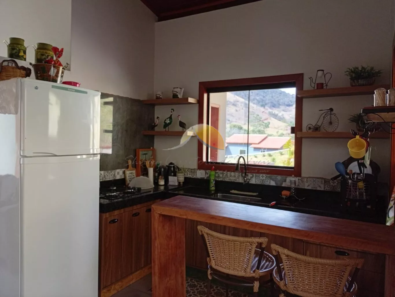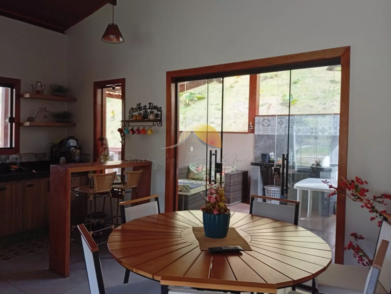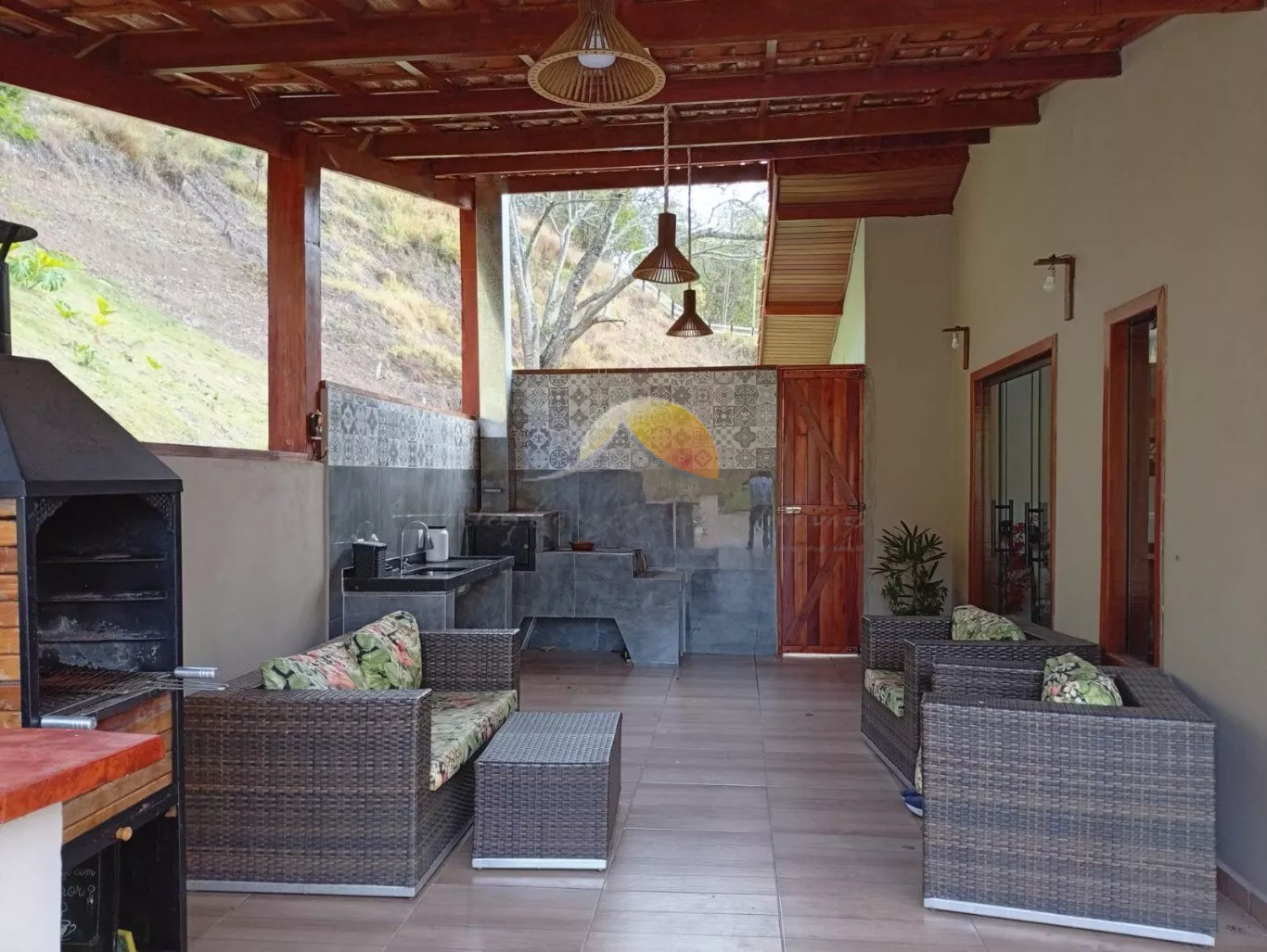 Área gourmet com churrasqueira e fogão a lenha