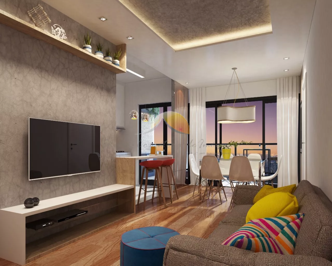 Tipo 3, finais 02 e 03: 74,70 m²- 2 dormitórios, sendo 1 suíte e 1 vaga de garagem.